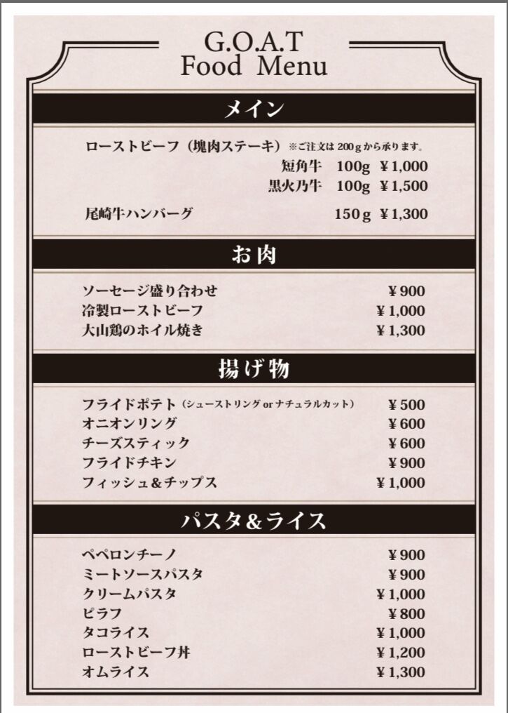 ディナー表示価格は全て税抜きとなります。
